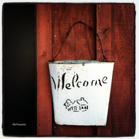 We parked next to the winery and enjoyed the view for a few moments before the chill in the air became too much to endure. As I walked to the front door, a small welcome sign shaped like a bucket and capable of holding flowers was nailed to the door. This put a smile on my face and eased my still shaking form the drive nerves.